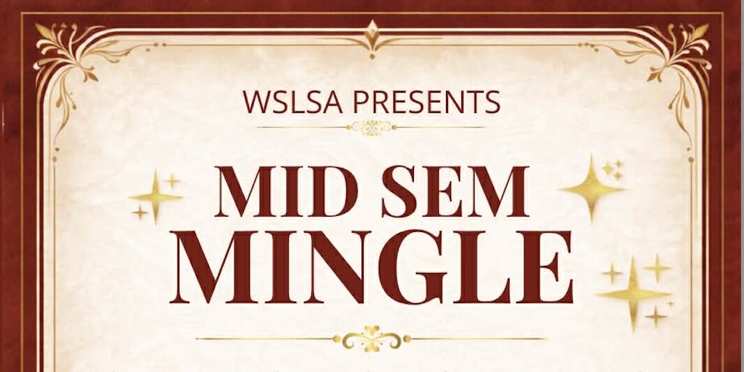 WSLSA is bringing you our Mid Sem Mingle - a chance to unwind mid-semester, meet fellow law students, and enjoy some good food !